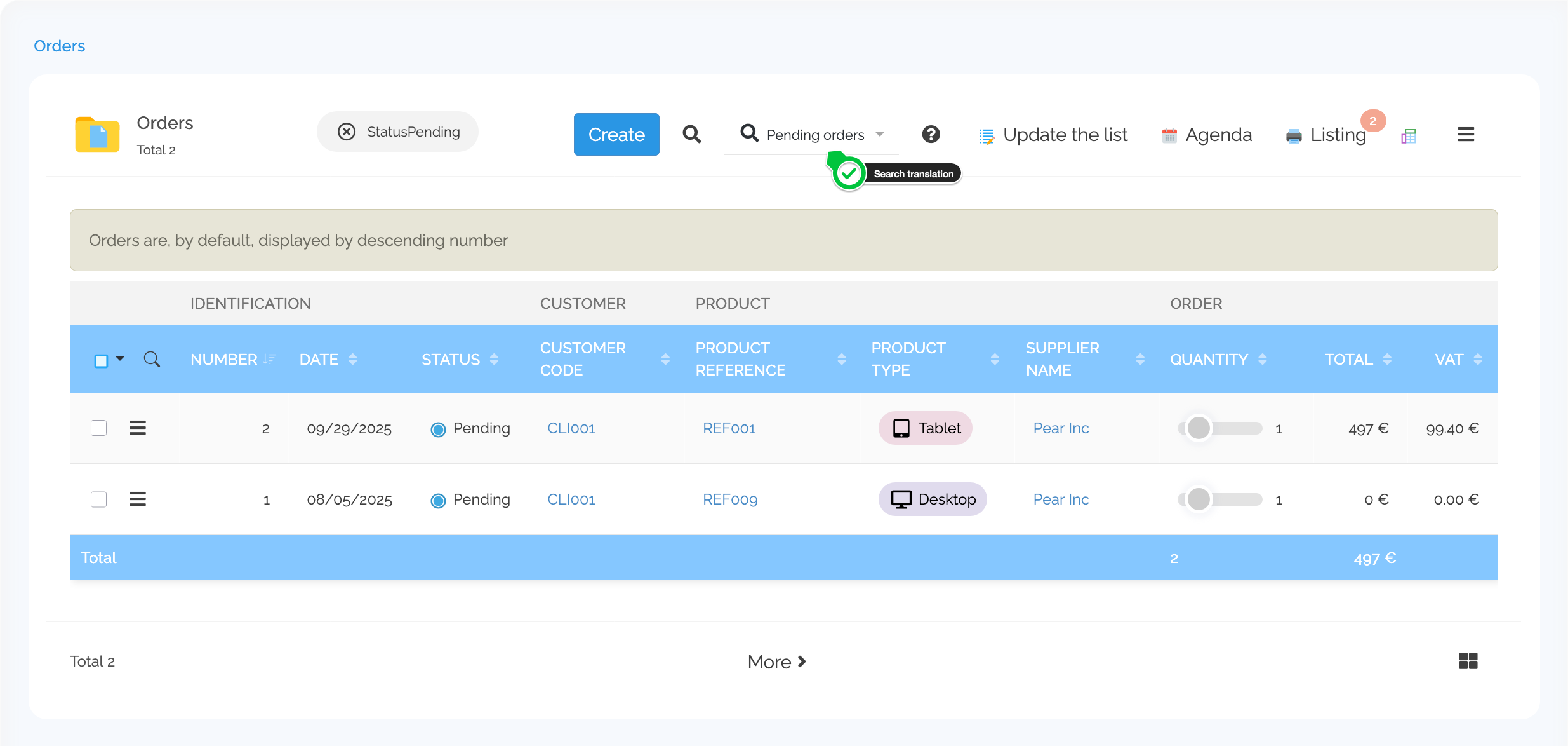 Translation | The search's label |